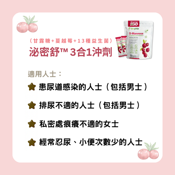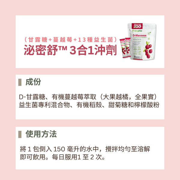 Biophix Mannose 2GO 泌密舒 3合1沖劑(甘露糖+蔓越莓+13種益生菌)